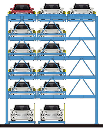 升降橫移類機(jī)械式停車設(shè)備是停車行業(yè)應(yīng)用廣泛的一類停車產(chǎn)品,型式比較多,并且可以采用地面上結(jié)合基坑的形式,此類設(shè)備對(duì)場(chǎng)地的適應(yīng)性較強(qiáng),對(duì)土建要求較低,可建在露天,也可建在大樓的地下。規(guī)??纱罂尚?,可根據(jù)不同的地形和空間進(jìn)行任意組合、排列,空間利用率高,設(shè)備穩(wěn)定可靠,存取車快捷,使用維護(hù)簡(jiǎn)便,價(jià)格較低。